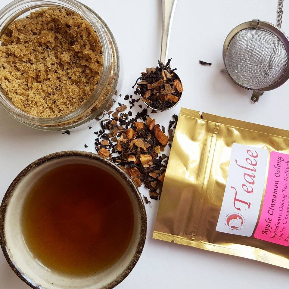 We've created this scrub with fall in mind, it's cozy warm aroma and rich ingredients will be your new seasonal favorite! This gentle brown sugar scrub is made with Tealee apple cinnamon oolong tea, pumpkin seed oil, and a dash of clove.